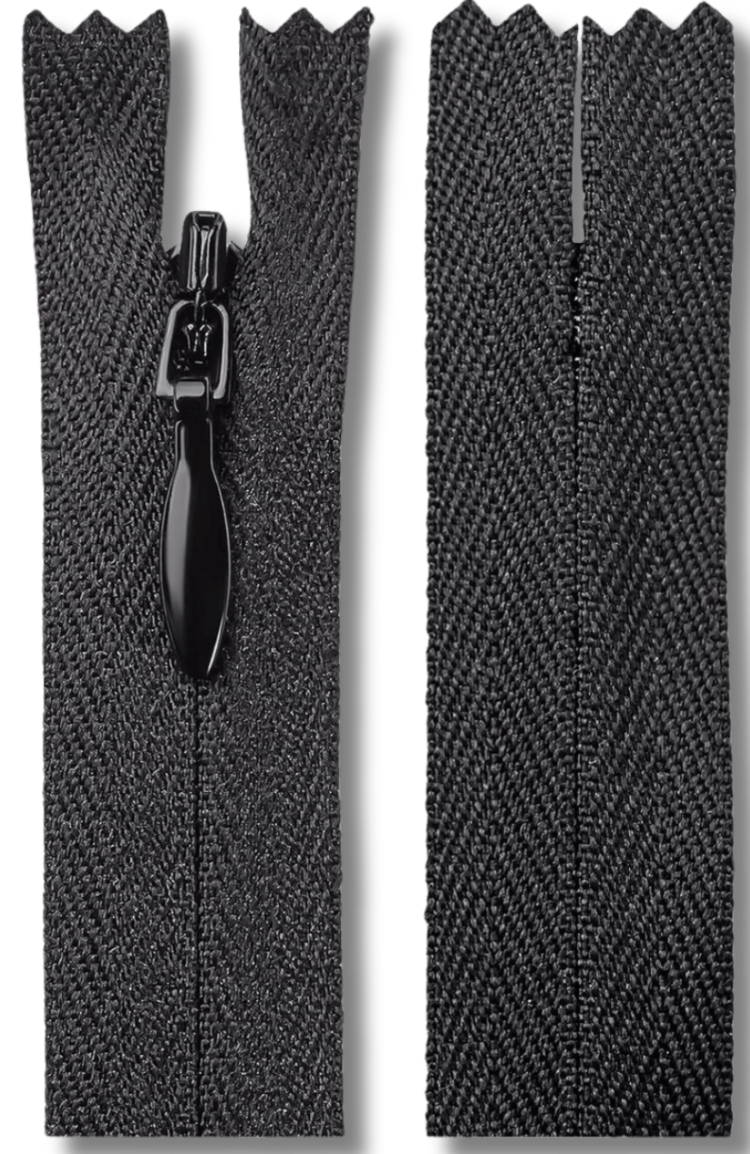 Our invisible zippers are designed for a seamless look, hidden within the fabric for a clean, sleek finish. Perfect for dresses, skirts, and other formal wear, they offer a discreet, smooth closure.